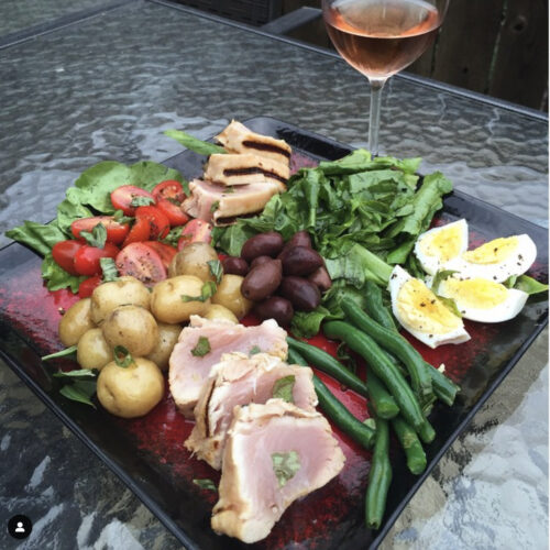 The photo: In our photo you may have noticed that we do not have red lettuce or arugula. At that time we had a backyard and decided to use garden lettuce. So, if you were just about to compose an email with an "AHA!" you can close the tab. Wine Pairings: This is beautiful complemented by a good rosé. We enjoyed it with a Belle Glos Pinot Noir Blanc (Sonoma 2014).